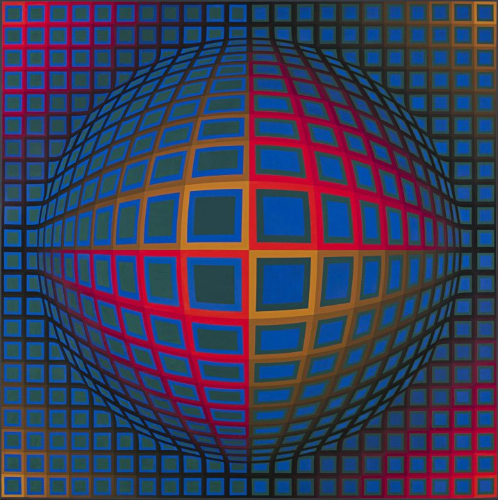 Another movement in this connection is Op Art (optical art), which is a form of geometric abstract art, which explores optical sensations through the use of visual effects such as recurring simple forms and rhythmic patterns, vibrating colour-combinations, moiré patterns and foreground-background confusion. French-Hungarian artist Victor Vasarely is known as the ‘grandfather and leader’ of the Op Art movement. Using geometric shapes and colourful graphics, Vasarely created compelling illusions of spatial depth, as seen in his path-breaking work Vega-Nor, which was followed by many such works.